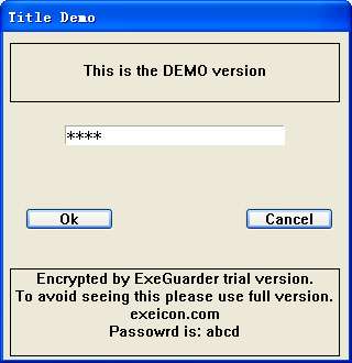 Password Dialog Window of exe-file encrypted by trial version ExeGuarder